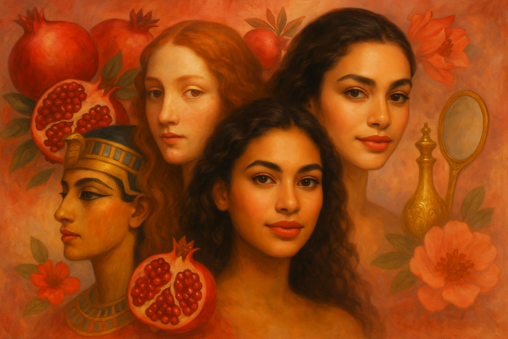 The pomegranate has always been more than fruit. In the time of Cleopatra, it was said to be part of her beauty rituals. In Persian courts, queens regarded its ruby seeds as treasures of vitality. In Greek mythology, Aphrodite herself was tied to its allure. Across history, it has symbolized beauty, fertility, and radiance.